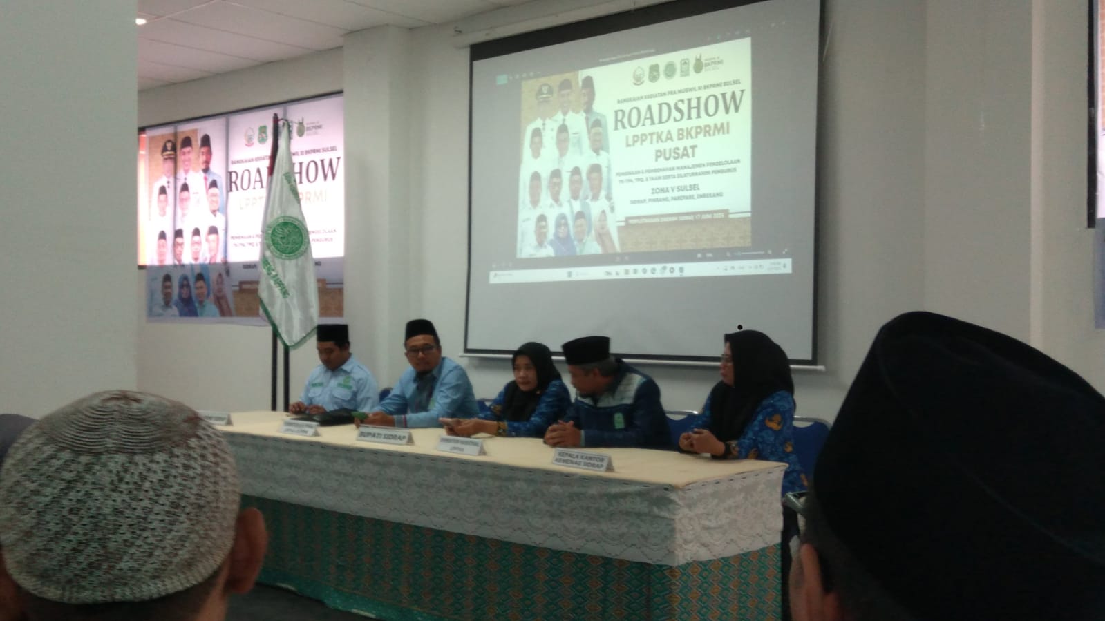 SIDENRENG RAPPANG — Kabupaten Sidenreng Rappang (Sidrap) menjadi tuan rumah Roadshow Lembaga Pembinaan dan Pengembangan Taman Kanak-Kanak Al-Qur’an (LPPTKA) BKPRMI Pusat Zona 5, Selasa (17/6/2025) di Aula Perpustakaan Umum Daerah Sidrap, Jalan Wolter Monginsidi, Kecamatan Maritengngae.