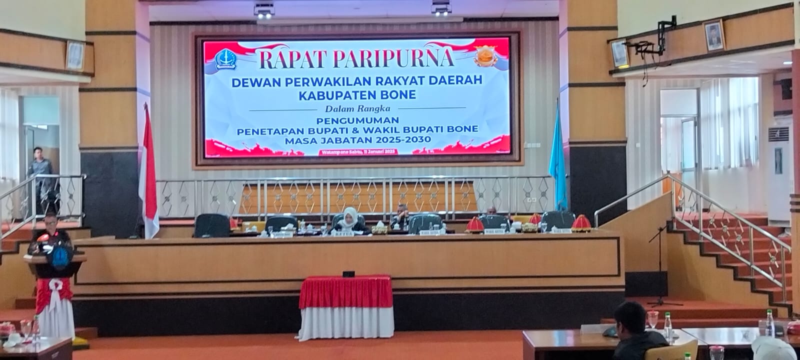 BONE, BOCAHRAKYAT.COM – Dewan Perwakilan Rakyat Daerah (DPRD) Kabupaten Bone, Sulawesi Selatan (Sulsel) menggelar rapat paripurna dalam rangka pengumuman penetapan Bupati dan Wakil Bupati Bone masa jabatan 2025-2030.