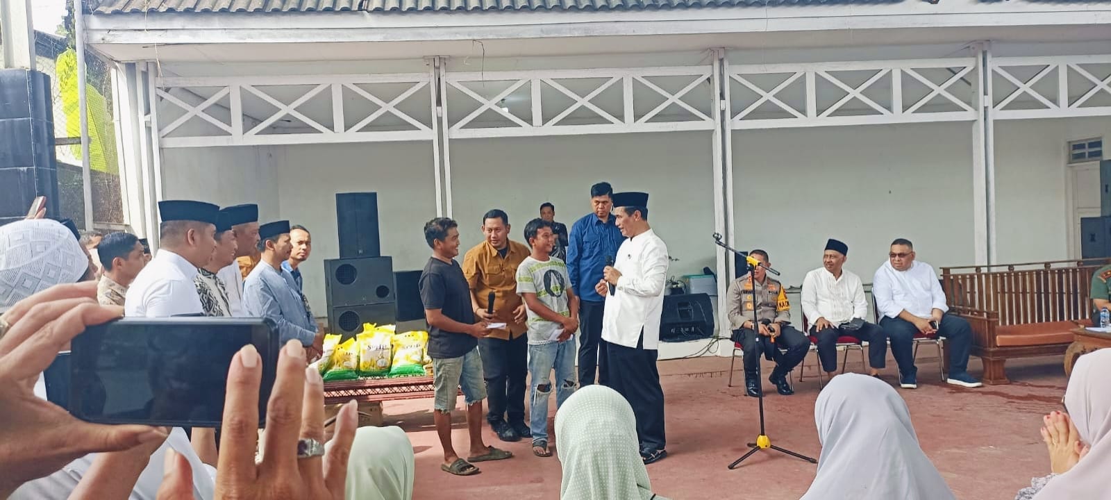 Mentan Andi Amran Sulaiman yang juga kakak kandung Bupati Bone, Andi Asman Sulaiman itu memberikan sembako berupa beras dan minyak goreng.