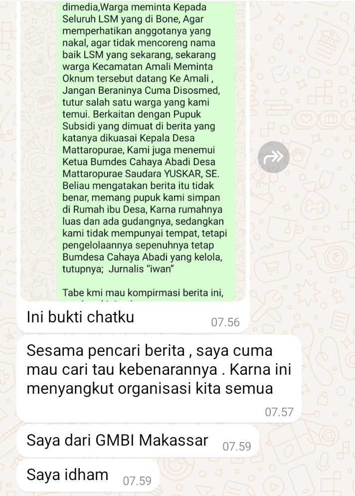 Anehnya sehari pasca ditayangkan, Rustan mengaku menerima rilis via WhatsApp dari nomor +62 859 3327 0XXX bernama Idham mengaku dari Lembaga Swadaya Masyarakat (LSM) GMBI Makassar.
