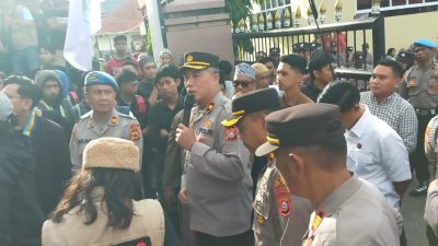 BONE – Wakapolres Bone, Kompol Antonius Tutleta memimpin langsung pengamanan dan menerima aspirasi ratusan pengunjuk…