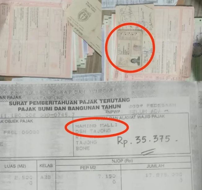 Menurut Usman, Surat Pemberitahuan Pajak Terutang (SPPT) atas lahan itu masih tercatat atas nama kakeknya, Haming Malli. Dokumen tersebut terakhir terbit pada tahun 2009 dan hingga kini belum diperbarui.